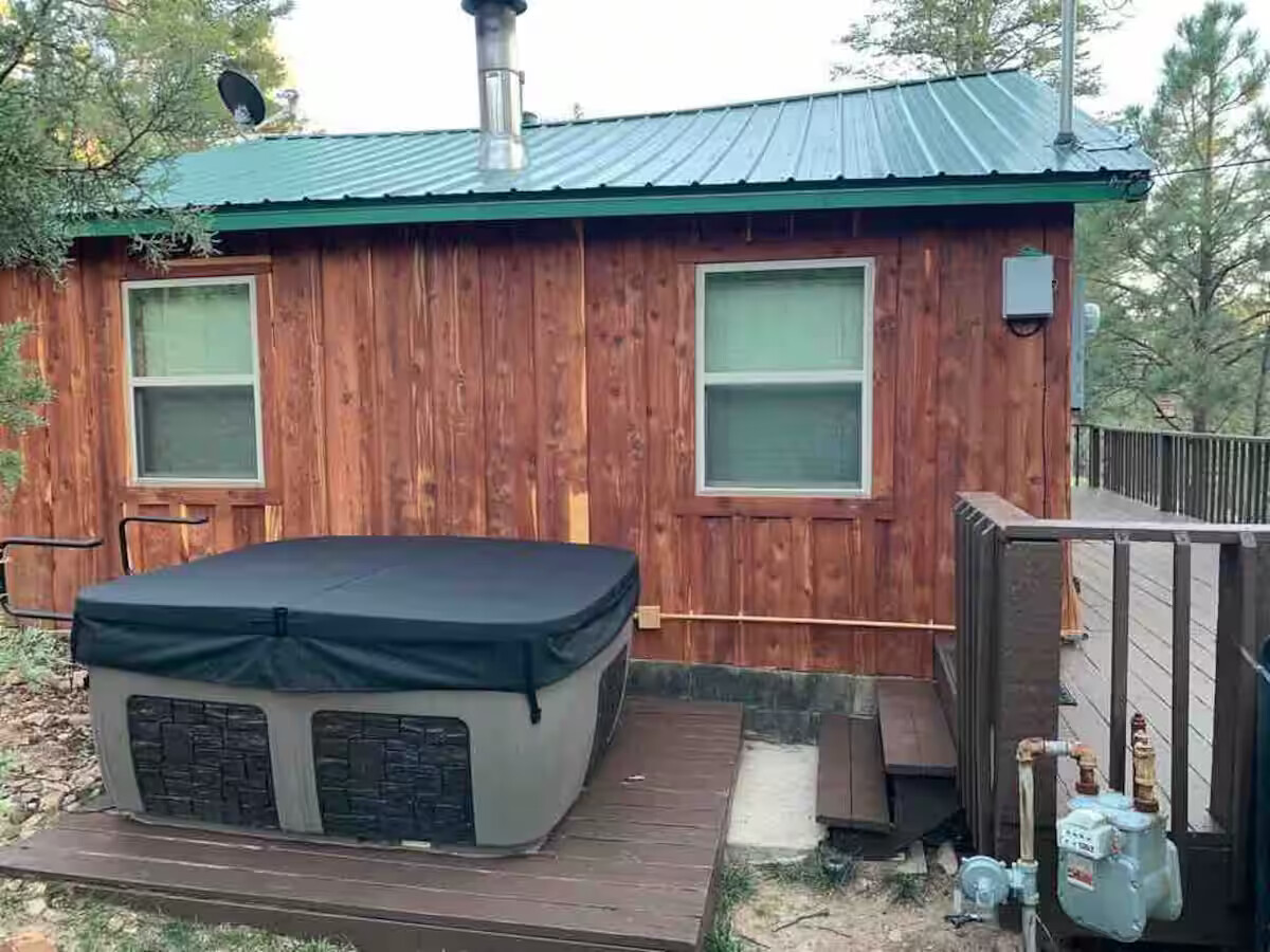 You deserve a get away! We have a 1 bedroom, 1 bathroom cabin on 1.1 acres that is close to town, yet has that out of town feel. The cabin is 440 square feet and has all the amenities you need. A full kitchen, shower and bath, and a queen bed in the bedroom make this cozy cabin comfortable. The love seat in the living area folds out into an individual twin bed. Fawn ridge cabin also has a fireplace and outdoor decks to enjoy the fresh mountain air. Don’t forget about the jacuzzi!