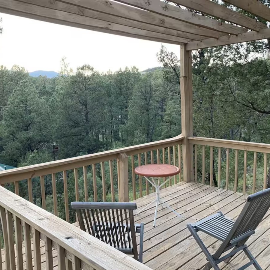 The Cabin is a great alternative to a hotel or condo, where you have your own place on 1.1 acres and are in the midst of the pine trees. Downtown Ruidoso is approximately 4 miles away and the ski slopes (Ski Apache) are about 15 miles away. There are many restaurants within 2-3 miles as well. There is a very nice deck to sit on and relax. Use the grill (charcoal) to make your favorite meals. There is also nice wildlife watching, from the bird feeder just feet from the deck to watching the deer walk through the property.