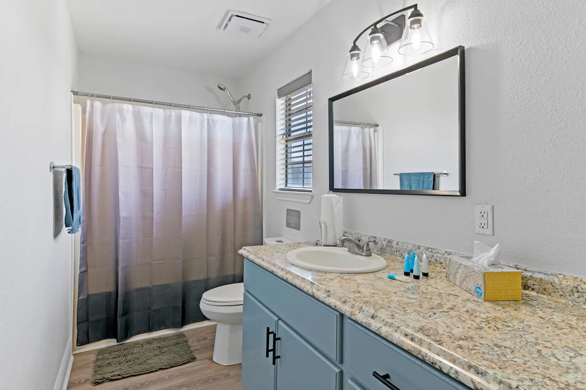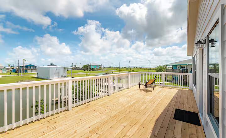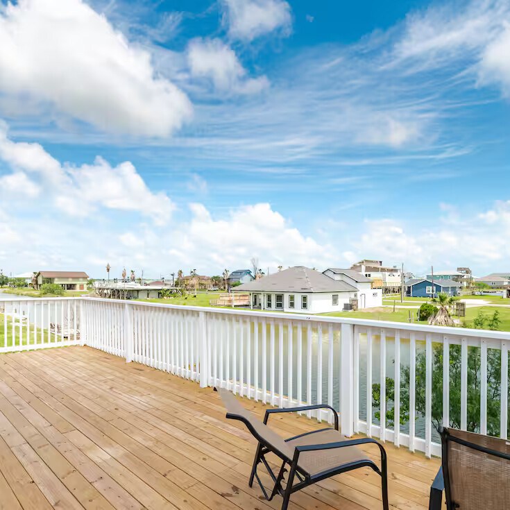 It’s a great place to come enjoy Rockport whether you are fishing or just coming to enjoy the beach. The recently remodeled beach house includes a large upstairs deck that overlooks the canals and Salt Lake in the distance. The house features 3 bedrooms, 2 with queen beds and one with twin bunk beds.